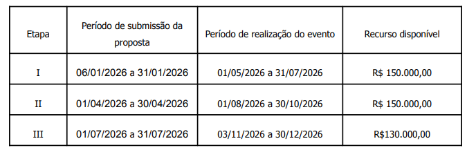 | Período de Análise da Readequação orçamentária das propostas | 09/02/2026 a 10/02/2026 |