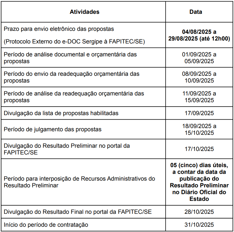 EDITAL FAPITEC/SE/SEED Nº 17/2025 – PROGRAMA DE APOIO A REALIZAÇÃO DE FEIRAS DE CIÊNCIAS ESCOLARES NA REDE PÚBLICA ESTADUAL DE EDUCAÇÃO