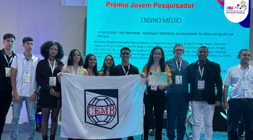 O projeto intitulado ‘Avaliação Temporal da Qualidade da Água do Açude da Marcela‘, desenvolvido pelo pesquisador Marcos Santiago e estudantes do ensino médio do Colégio Estadual Murilo Braga, localizado no município de Itabaiana, conquistou o 1º lugar da categoria Ensino Médio, no Prêmio Jovem Pesquisador, durante solenidade de encerramento do XXV Simpósio Nacional de Recursos Hídricos, promovido pela Associação Brasileira de Recursos Hídricos (ABRHidro), e realizado entre os dias 19 a 23 novembro. O projeto é fomentado pelo Governo do Estado, por meio do Programa de Apoio a Projetos de Desenvolvimento do Ensino na Escola (Edital 02/2022), realizado pela Fundação de Apoio à Pesquisa e à Inovação Tecnológica do Estado de Sergipe (Fapitec/SE), instituição vinculada à Secretaria de Estado do Desenvolvimento Econômico, da Ciência e da Tecnologia (Sedetec).